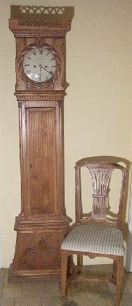 Um 1800, Norddeutsch, Uhrwerk restauriert, Kiefernholz, schöne Kälberzahnprofile, geölt und schellackgewachst.